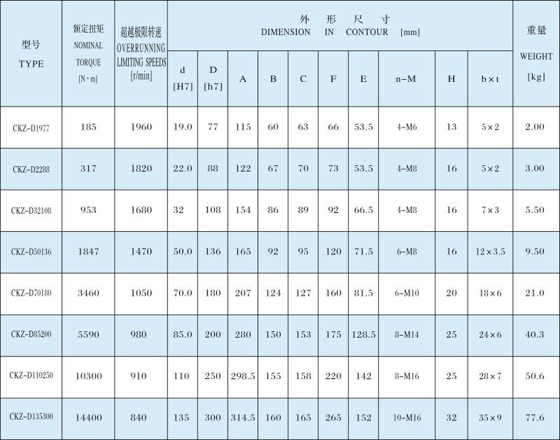 CKZ-D楔塊式單向離合器